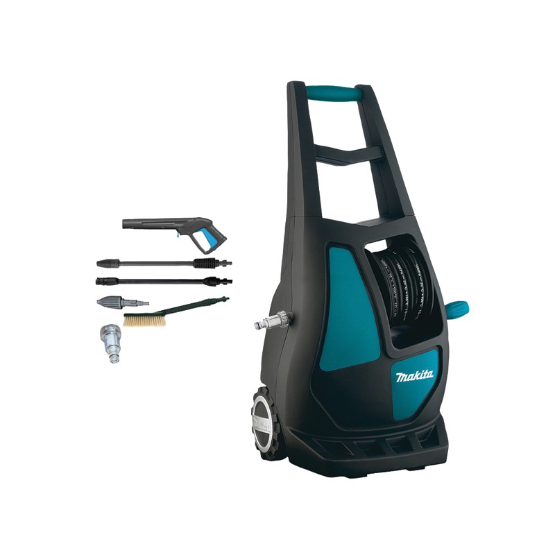 Características: Hidrolimpiadora de alto caudal de agua, con motor de inducción más eficiente que alarga la vida útil del equipo y asa y ruedas de goma para un sencillo desplazamiento. Equipada con sistema total Stop que para automáticamente el motor cuando se cierra el gatillo de la pistola, válvula de seguridad tipo Bypass para bajas presiones, racor macho para toma de agua de red y depósito de detergente integrado.