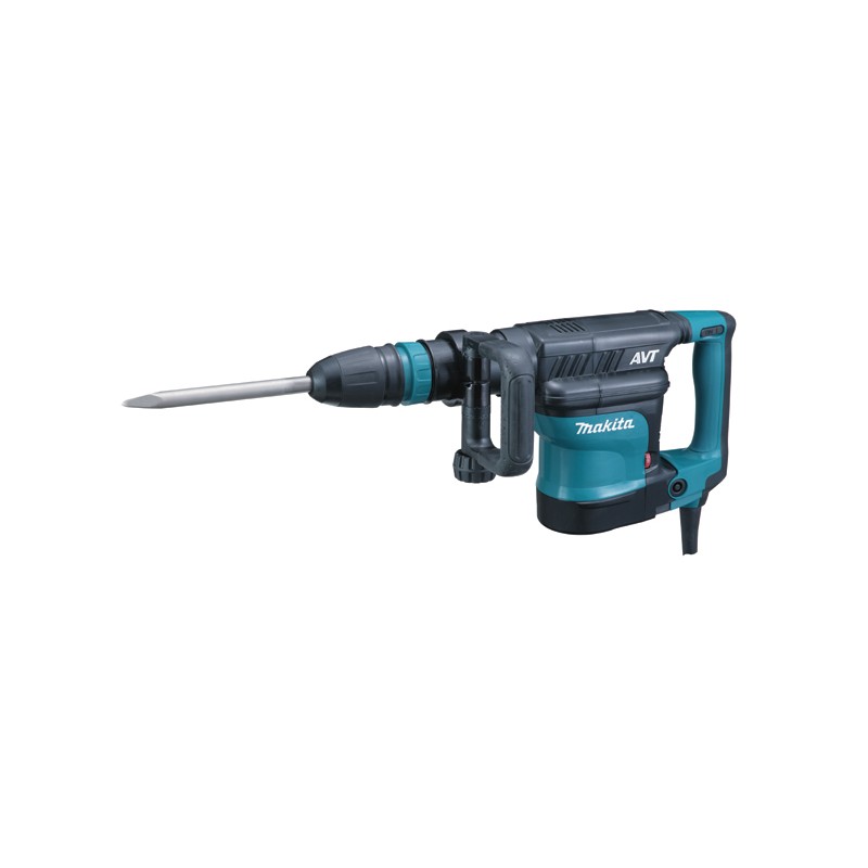 Características: Martillo con sistema antivibratorio AVT que reduce las vibraciones y diseño ergonómico con empuñadura con elastómero antideslizante que permite un mayor control de la herramienta por el operario. Martillo de arranque suave con modo ralentí equipado con 12 posiciones diferentes de cincelado e indicador luminoso de desgaste de escobillas y averías. Escobillas más duraderas, aumentando así los tiempos de mantenimiento. Equipo básico suministrado con empuñadura en forma de “D” y maletín de PVC.